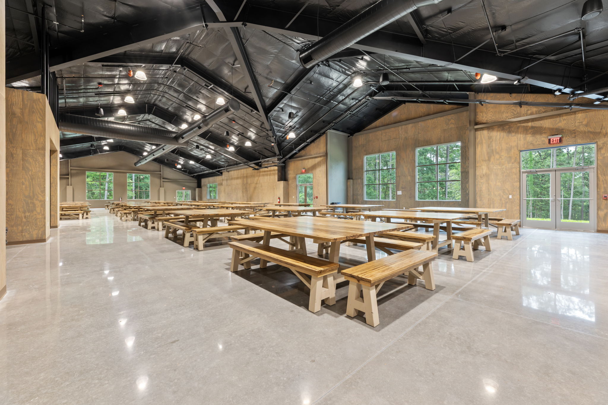 Camp Cho Yeh in Livingston, Texas, is a $6.9 million church camp facility delivered through KDW’s comprehensive design-build services, featuring two purpose-built structures totaling nearly 30,000 SF. The 19,757 SF dining hall includes a full commercial kitchen, servery, cold storage, spacious dining area, and camp store, while the 10,078 SF meeting hall offers a versatile common area with a stage and green room to support camp programming and gatherings.