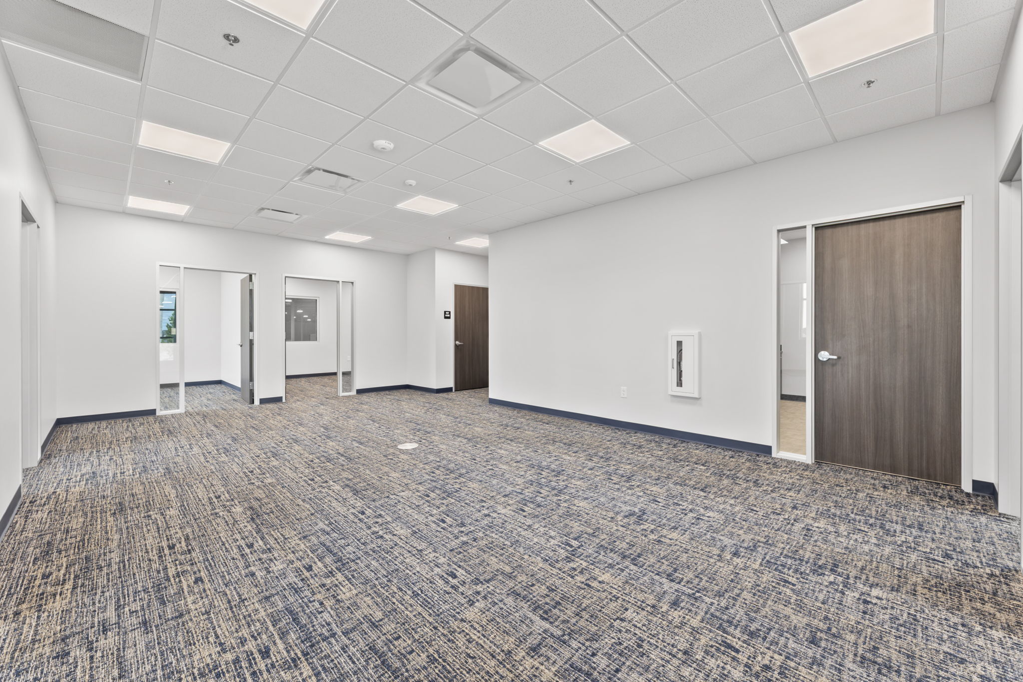 Key features include three 12’ x 16’ grade-level overhead doors, 17 dock positions with mechanical and hydraulic levelers, and robust electrical infrastructure with 800-amp main service and dedicated 200-amp services for exterior lighting and fire systems. The facility incorporates an ESFR fire suppression system and a 165kW rooftop solar panel system, demonstrating KDW’s ability to deliver sophisticated, sustainable distribution facilities tailored to specific client needs.