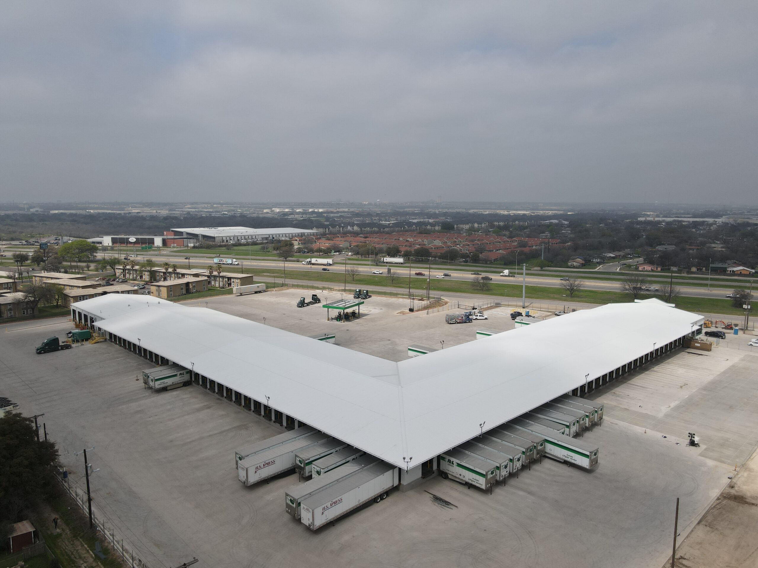 KDW was tasked with expanding R&L Carriers in San Antonio, Texas. The expansion and demolition of existing buildings occurred on an existing campus, so the project was broken up into four different phases to minimize the impact on owner operations. Phase I consisted of a new 11,010 SF maintenance shop, a new 19,300 SF terminal, and a new 2-lane fuel island.
